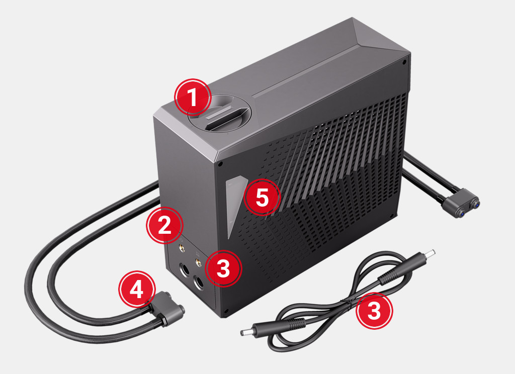 The Aquaris-branded accessory is a self-contained water loop that takes advantage of the existing heat pipes inside the laptop. The original manufacturer of this water cooler is XMG, under the name Oasis.